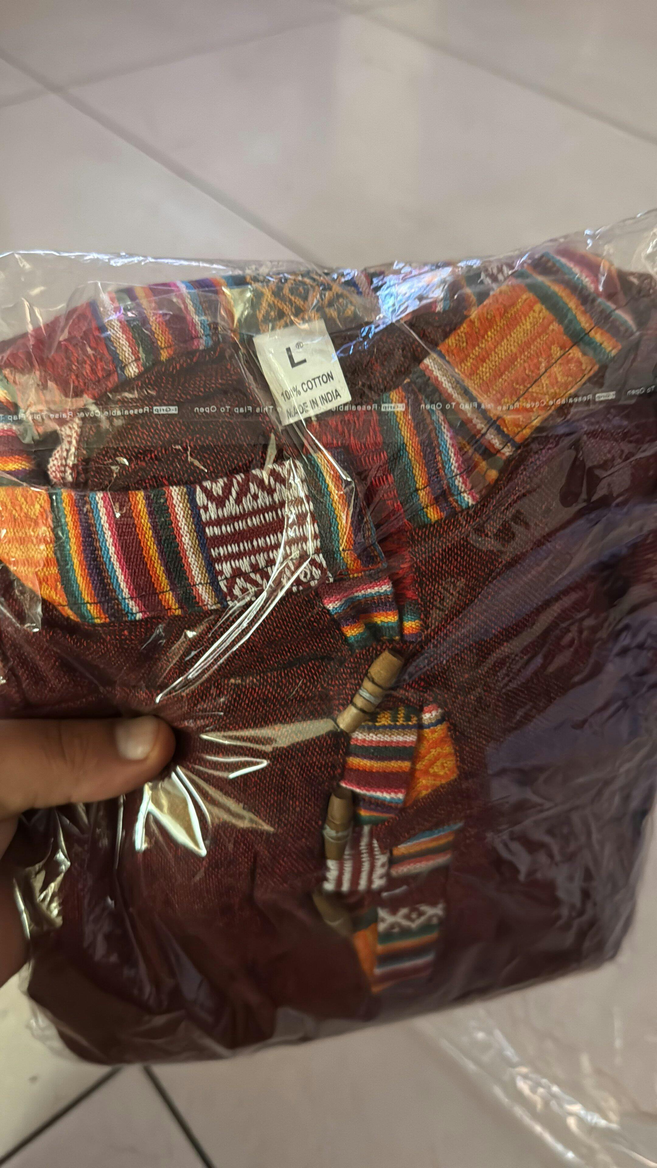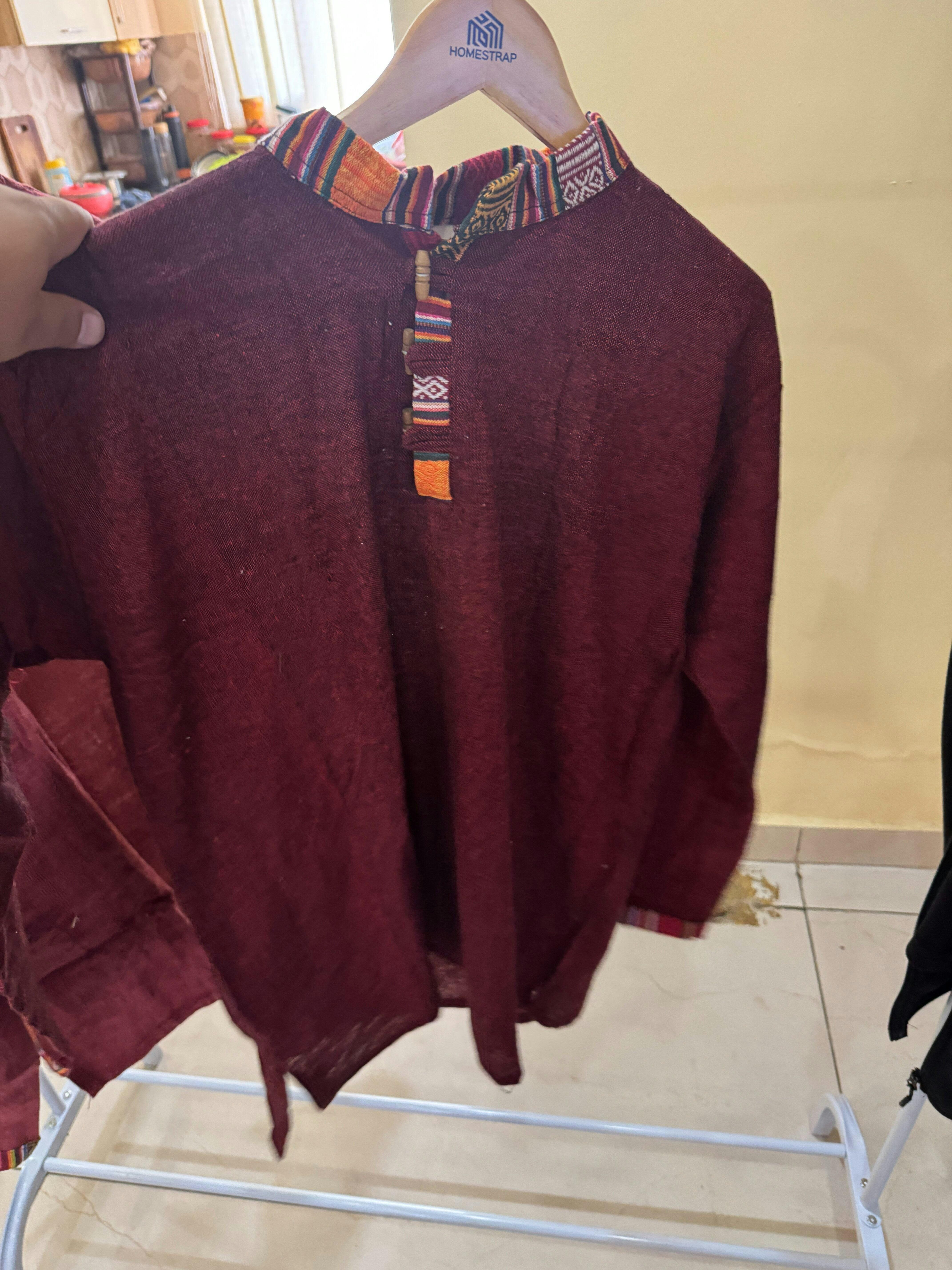 Handcrafted Cotton Khadi Ethnic Shirt in Maroon, blending tradition with modern style. Perfect for festive occasions, casual outings, or cultural celebrations!